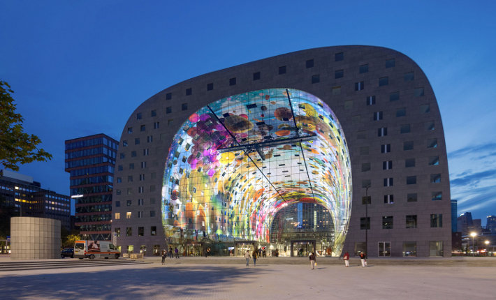 Az ufó-leszállópályára emlékeztető Markthal, a nemrég átadott vásárcsarnok egzotikus áruival még a piaclátogatásért nem rajongóknak is érdekes lehet. De ha mégis unatkoznánk, akkor csak egy minimális sétával elérhetjük a Markthal melletti kockaházakat.